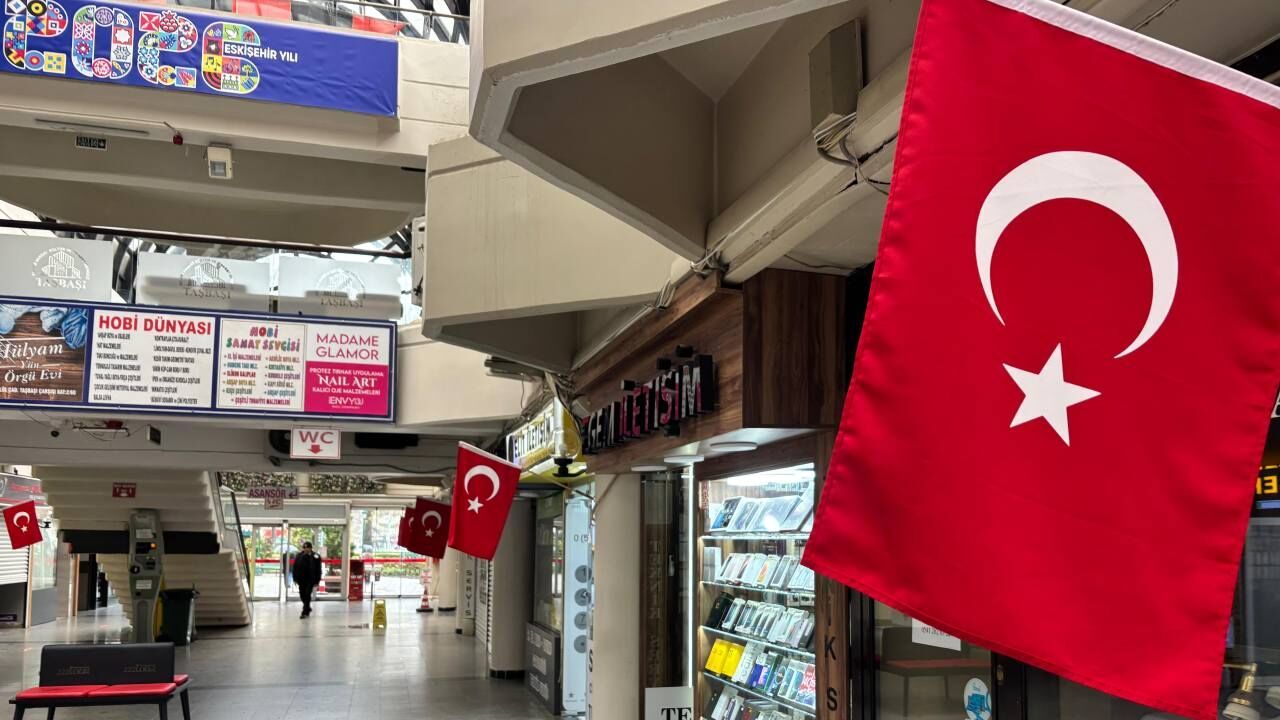 Eskişehir’de 23 Nisan Ulusal Egemenlik ve Çocuk Bayramı dolayısıyla Kuyumcular Çarşısı esnafı iş yerlerinin önüne Türk bayrakları astı. Çarşı boyunca sıralanan bayraklar dikkat çekici görüntüler oluşturdu.