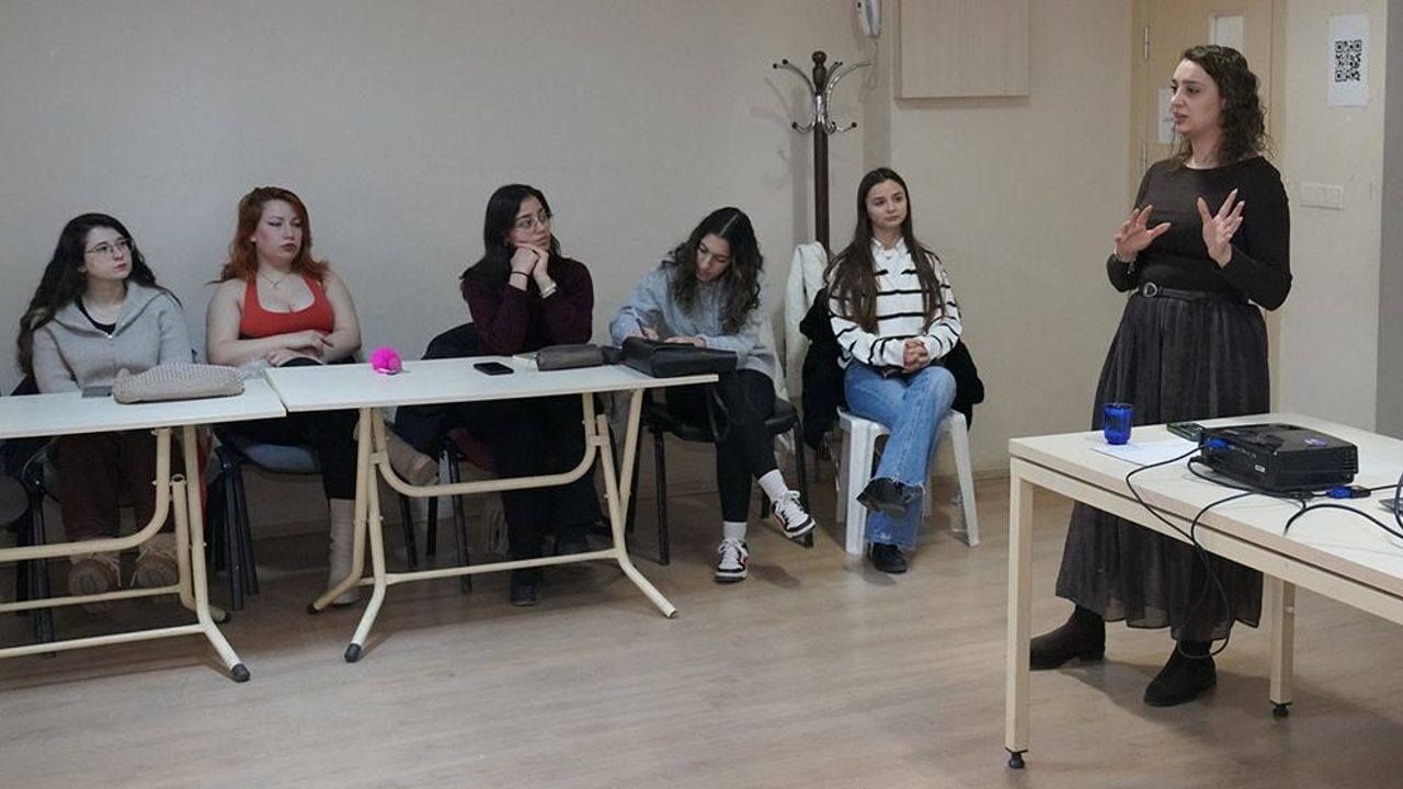 Toplumsal cinsiyet eşitliği ve şiddet konulu atölyede, kavramların ne anlama geldiği anlatıldı. Flört ilişkilerinde sağlıklı iletişim, güvenli ve güvensiz ilişkilerin özellikleri ile şiddetten korunma yöntemleri hakkında bilgiler paylaşıldı. Gençlere, ilişkilerde dikkat edilmesi gereken noktalar örneklerle aktarıldı.