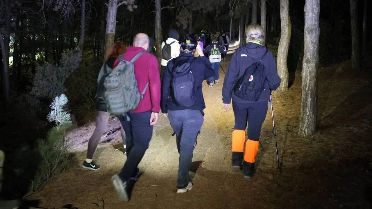 Yaklaşık 100 kişinin katıldığı yürüyüş, serin bir havada başladı. Katılımcılar, 8 kilometrelik parkur boyunca doğanın içinde ilerledi. Karanlık ve sessiz ortamda yapılan yürüyüş, şehir hayatından uzaklaşmak isteyenlere farklı bir deneyim sundu.