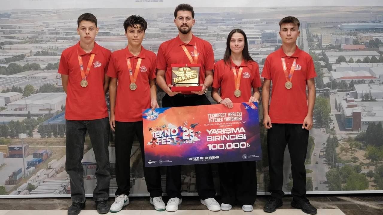 Elektrik Alanı Öğretmeni Mustafa Gedik’in rehberliğinde yarışmaya hazırlanan öğrenciler Batuhan Babadağ, Nehir Tolan, Melih Kığılcım ve Yiğit Taha Corcor’dan oluşan ekip, proje tabanlı çalışmalar, güvenli tesisat uygulamaları, pano montajı, enerji analizi ve sistem entegrasyonu gibi alanlarda gösterdikleri becerilerle jüriyi etkiledi. TEKNOFEST’te gelen birincilik ödülü, okulun uygulamalı eğitimdeki başarısını da ortaya koydu.